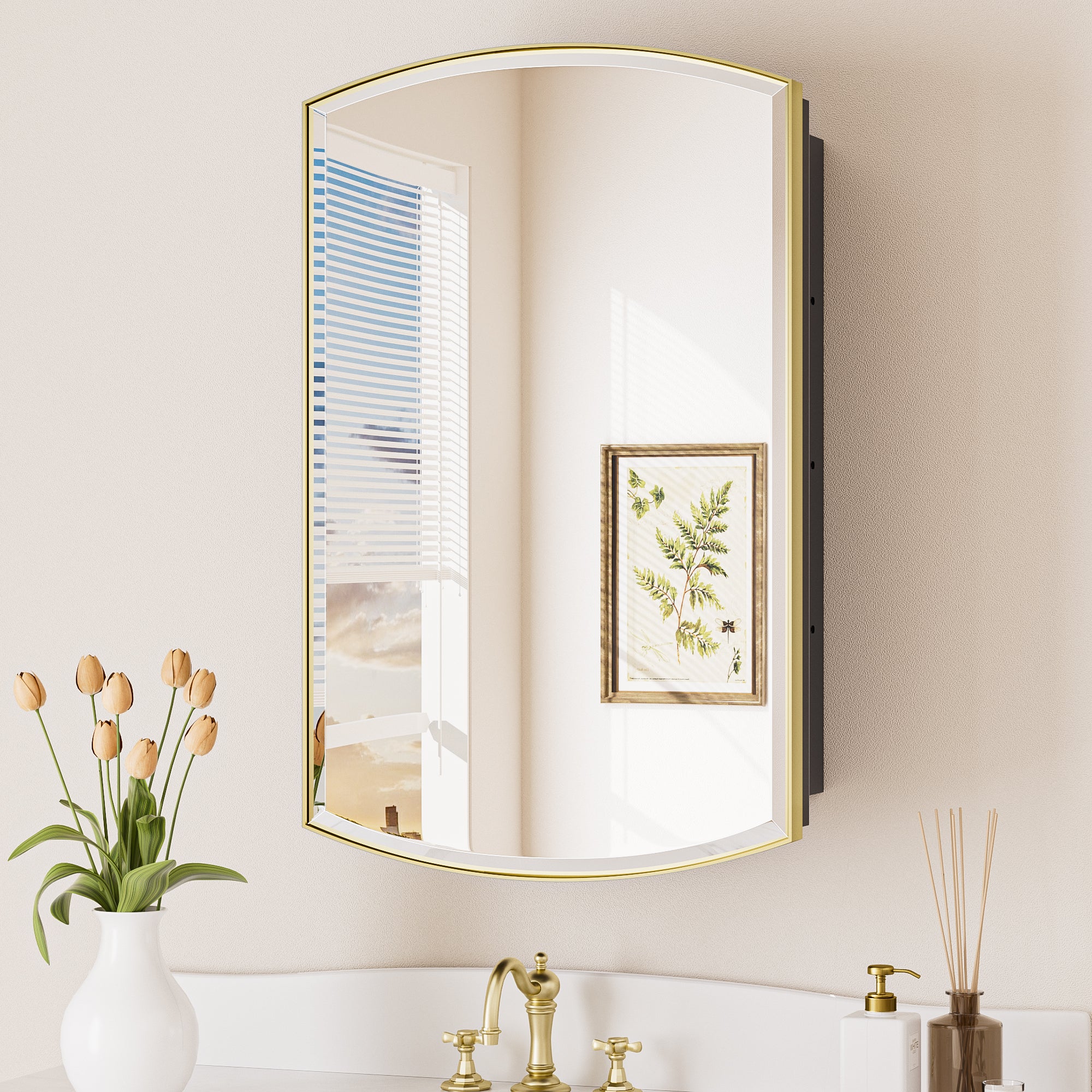 ¡¾Multiple Sizes¡¿Select from a range of sizes to suit your bathroom d¨¦cor. With a semi-gloss soft touch finish and an organic aesthetic, from farmhouse to contemporary style, our medicine cabinet seamlessly blend into any space.
