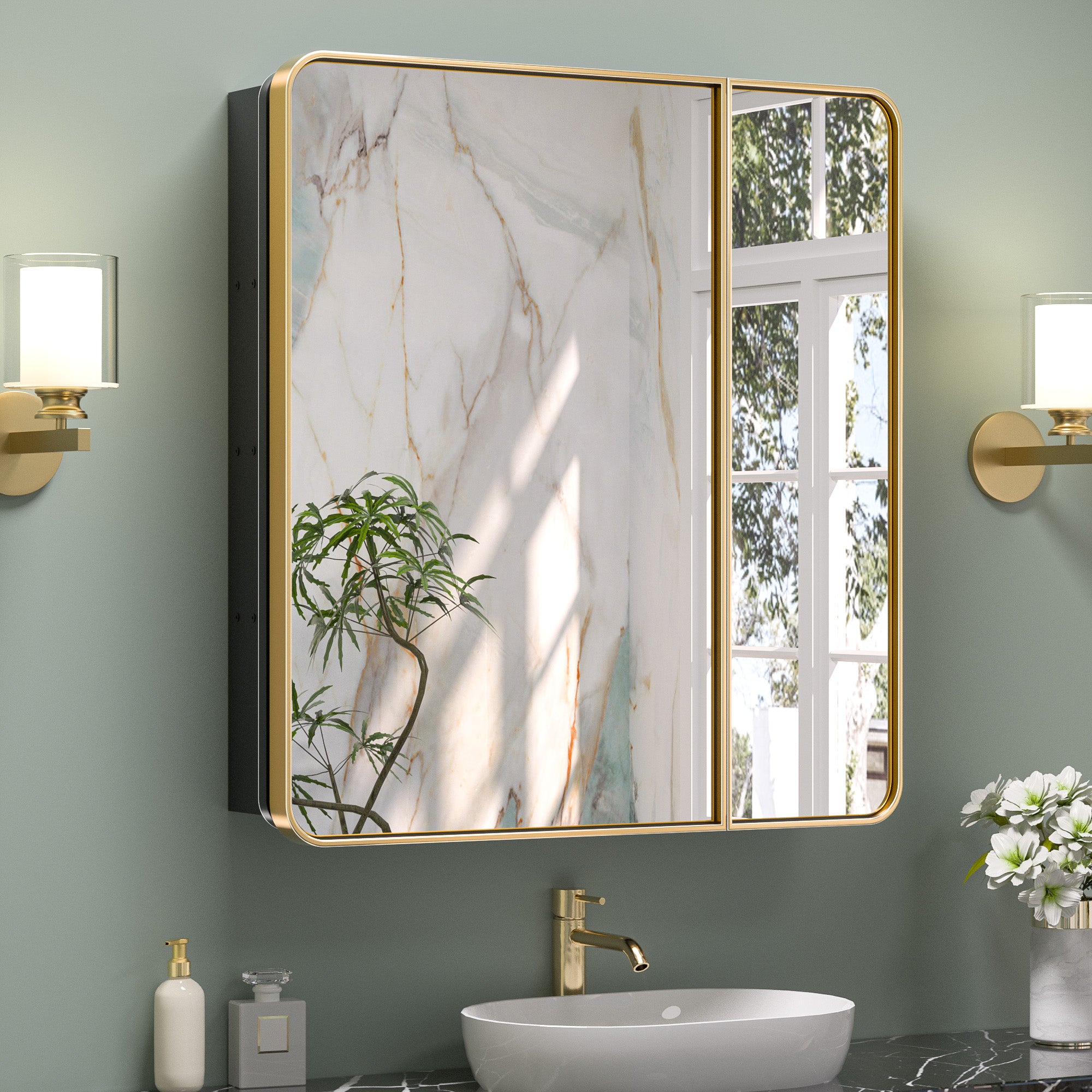 The beveled framed medicine cabinet with mirror is a premium addition to any bathroom. Crafted with refined qualities, this cabinet is available in three versatile colors - black, gold, chrome- that will complement any bathroom d¨¦cor style.?