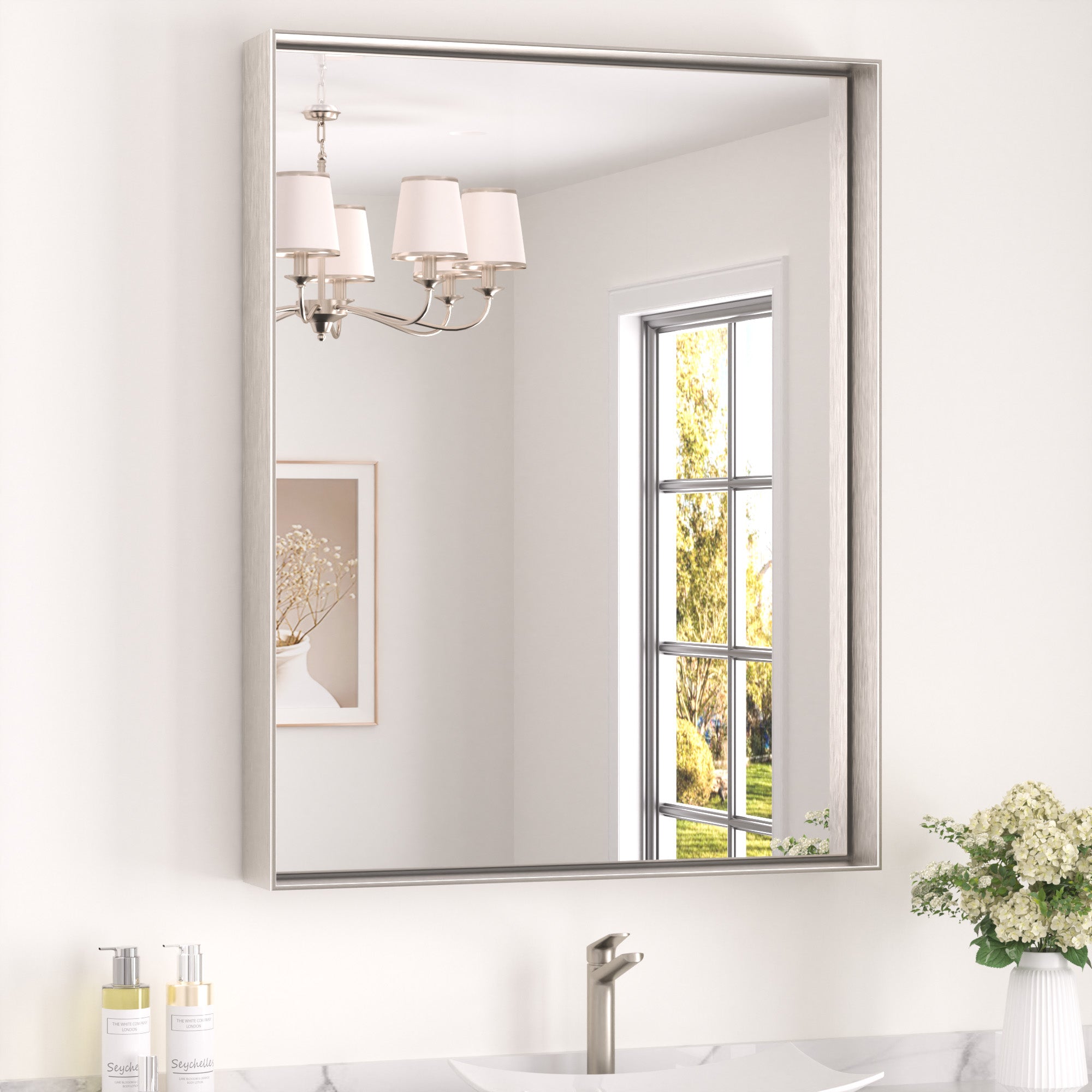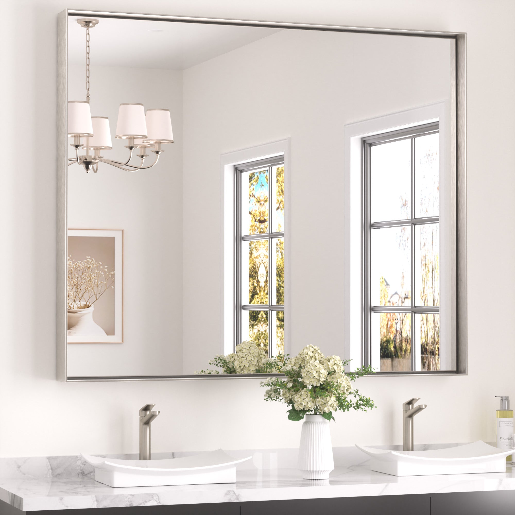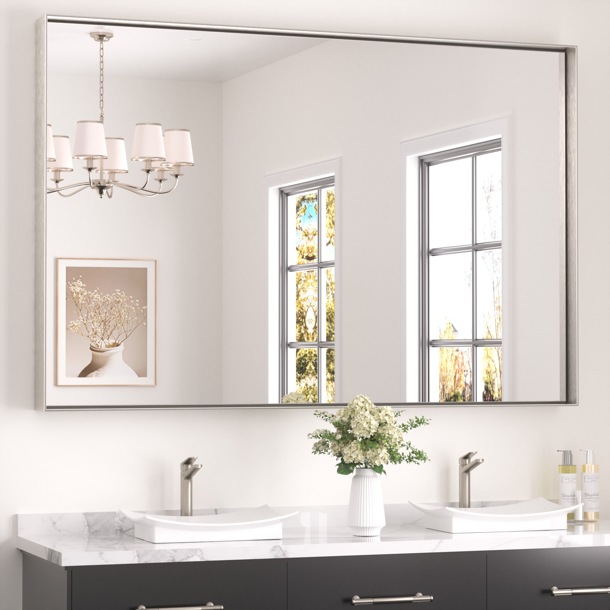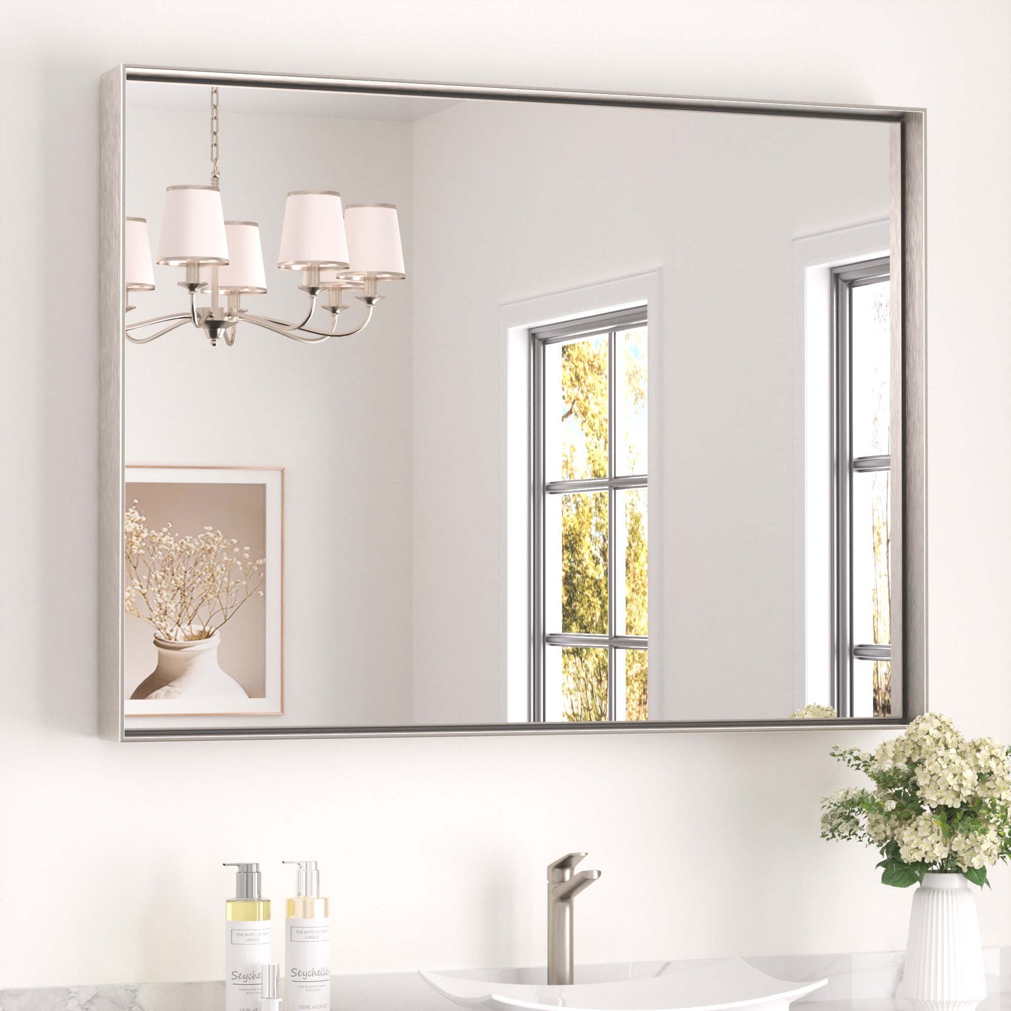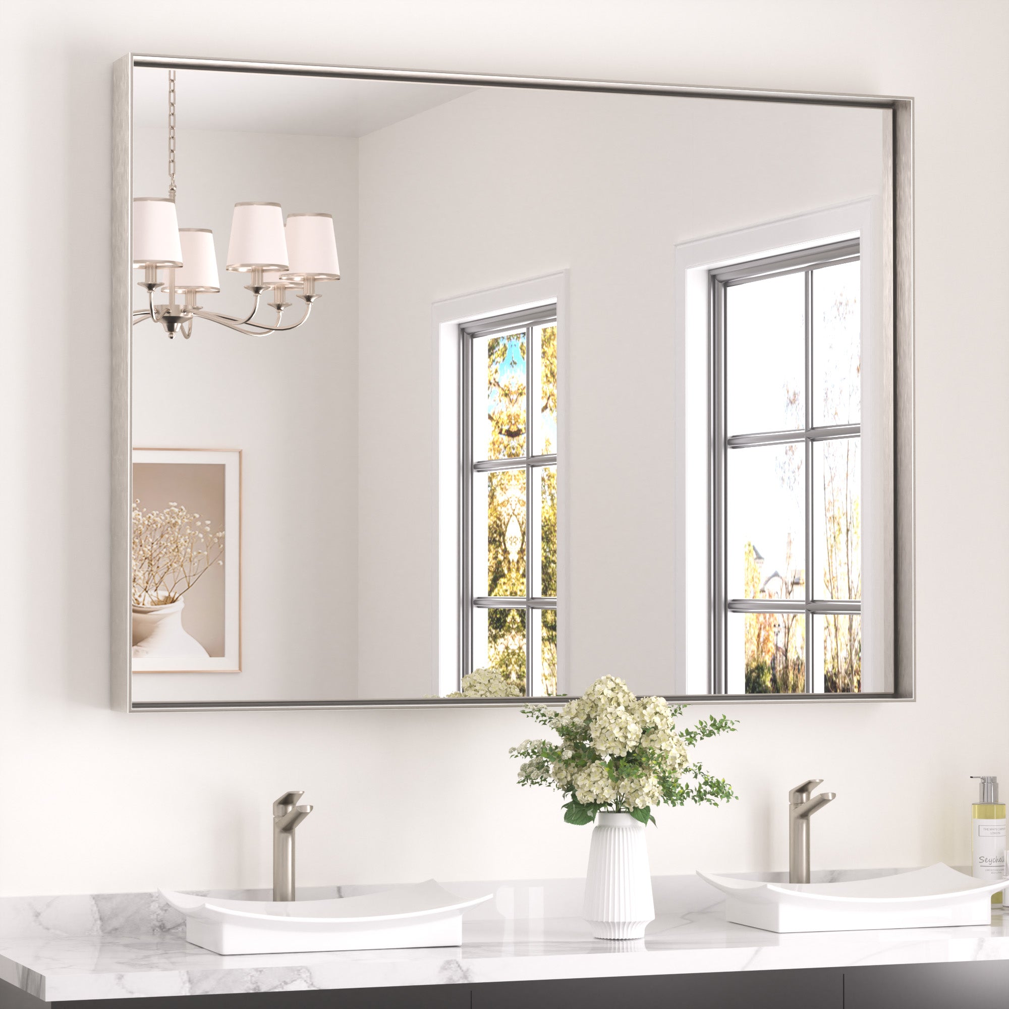 - ??Secure & Easy Installation??The brushed metal mirror designed with 4 built-in slots on the back for hanging horizontally or vertically. Super easy to install with one French cleat bracket. Hardware Included. We have designed a sturdy 4-layer packaging for mirrors, so you don't have to worry about receiving a broken mirror.