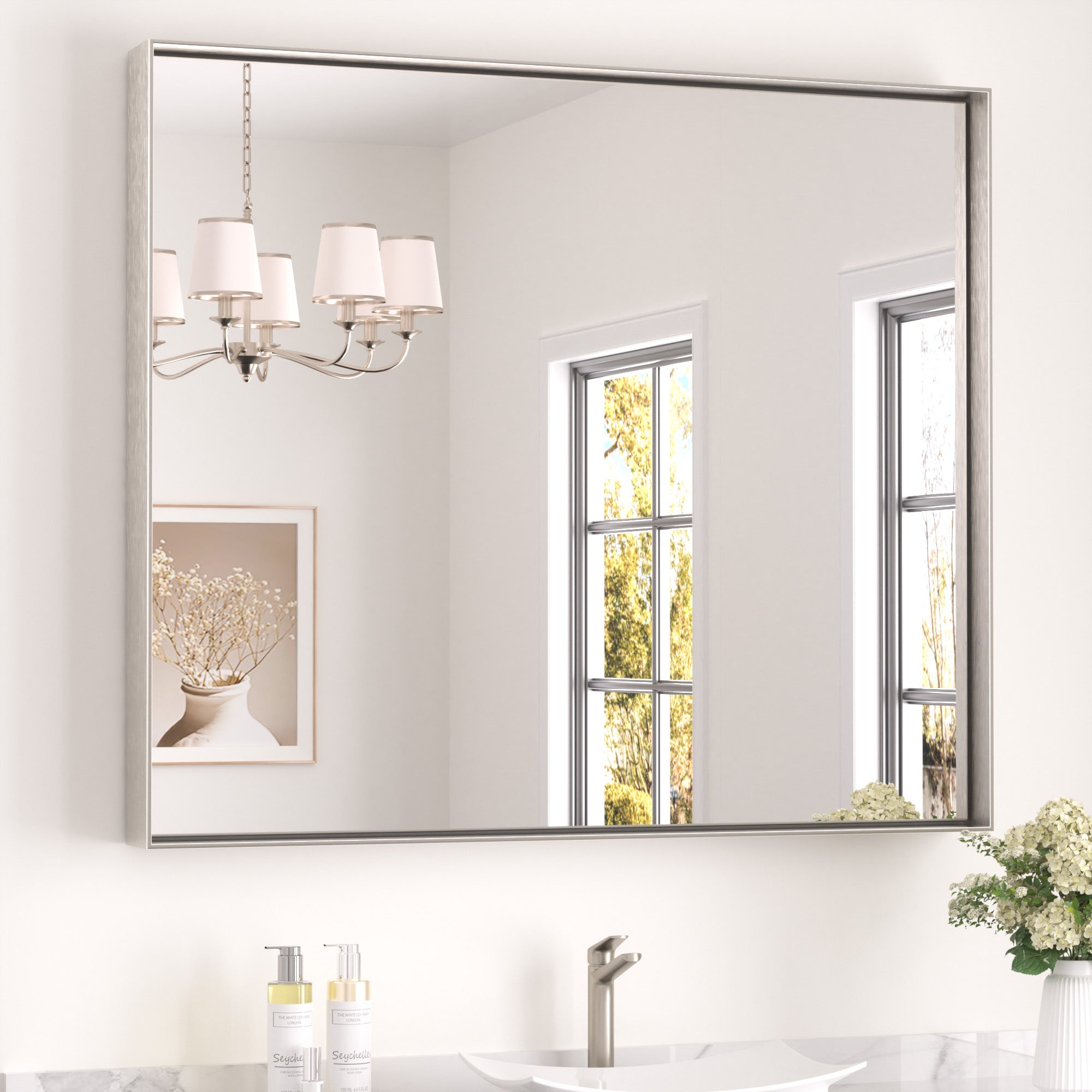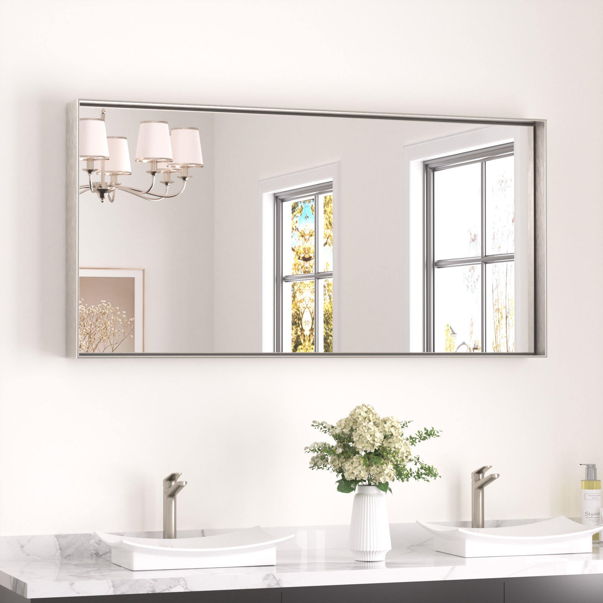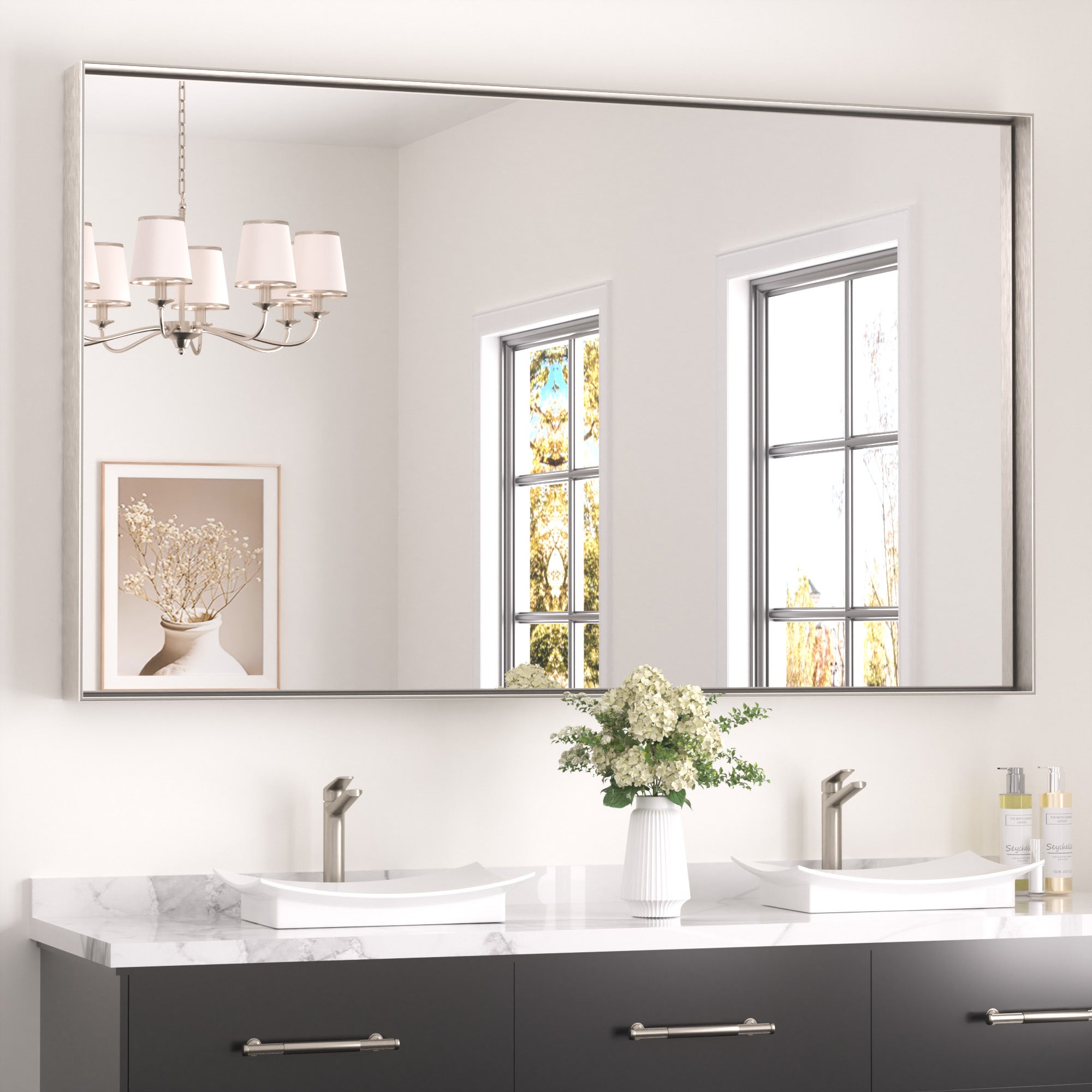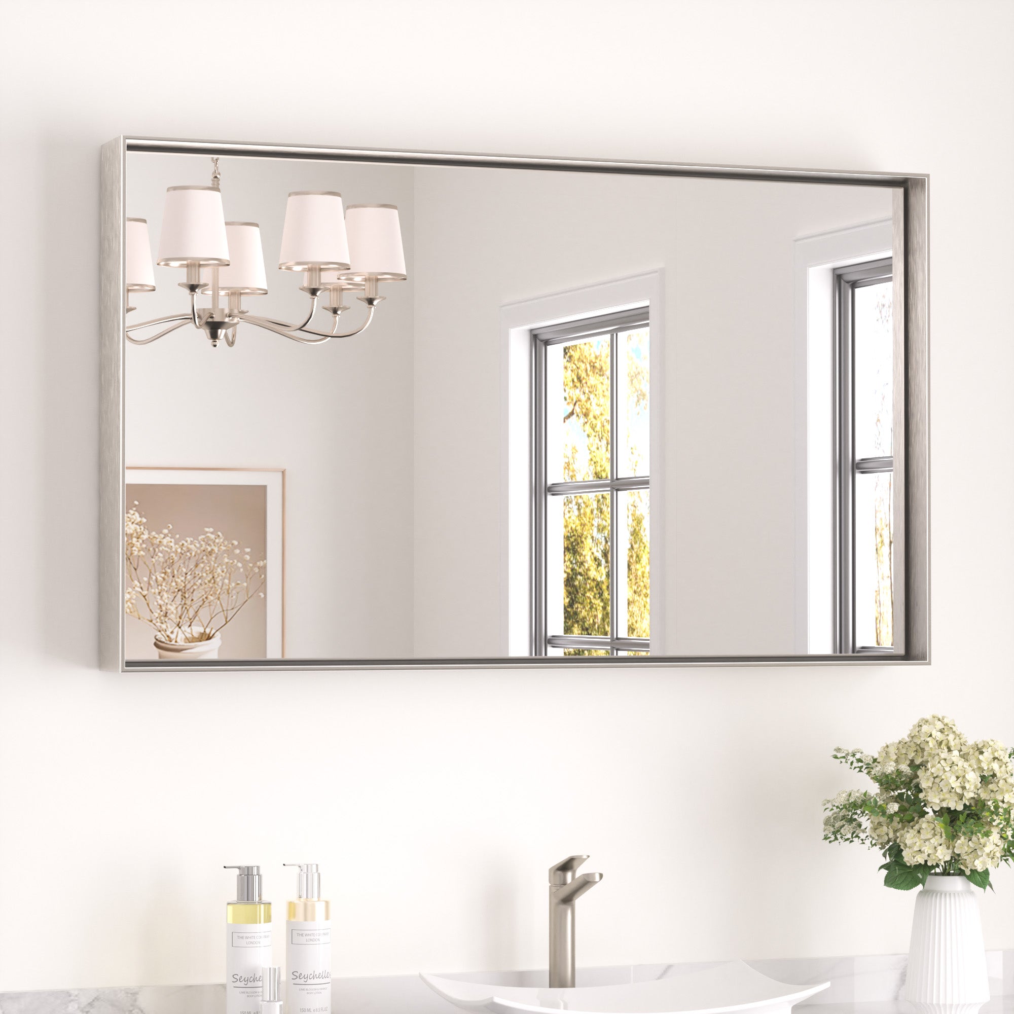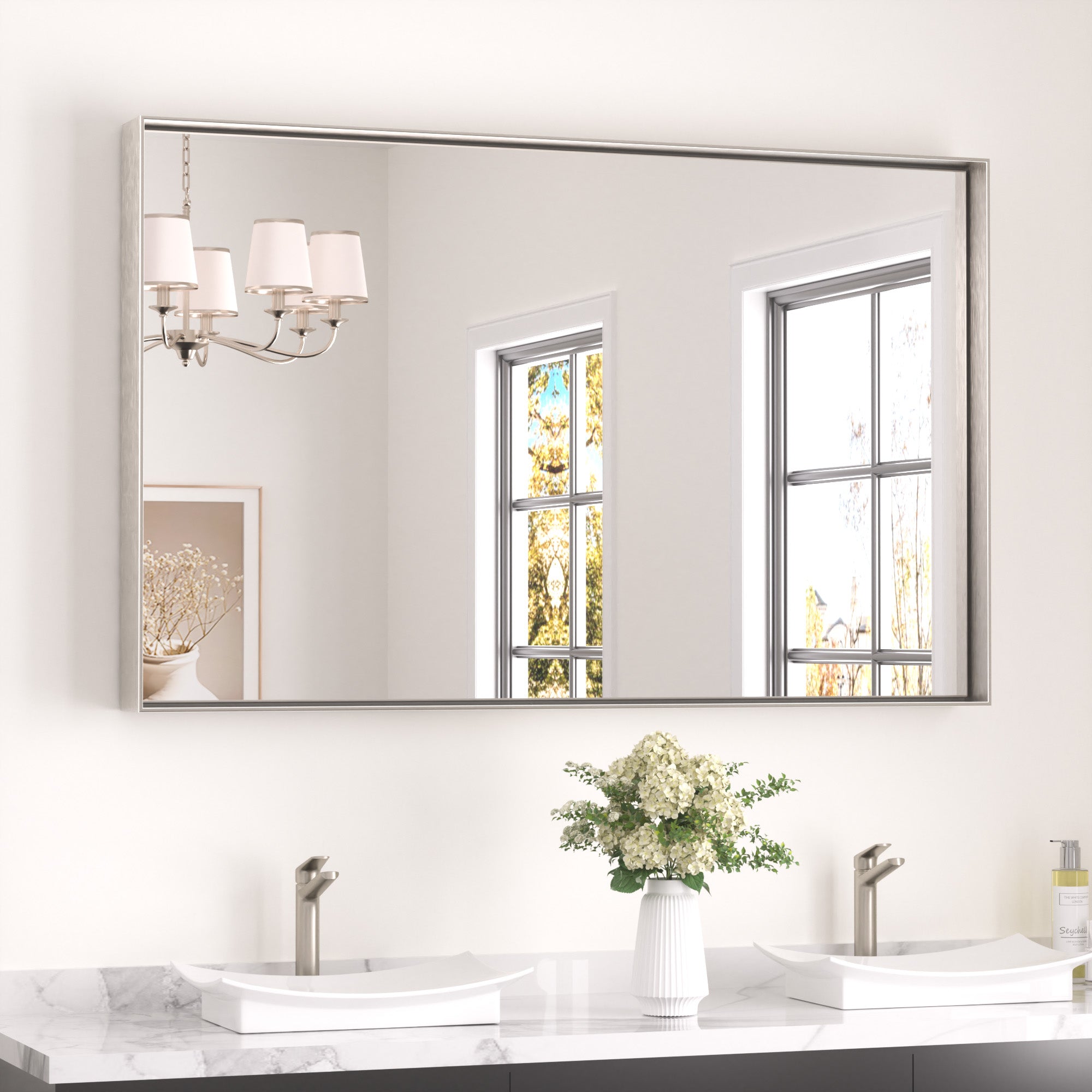 - ??Secure & Easy Installation??The brushed metal mirror designed with 4 built-in slots on the back for hanging horizontally or vertically. Super easy to install with one French cleat bracket. Hardware Included. We have designed a sturdy 4-layer packaging for mirrors, so you don't have to worry about receiving a broken mirror.
