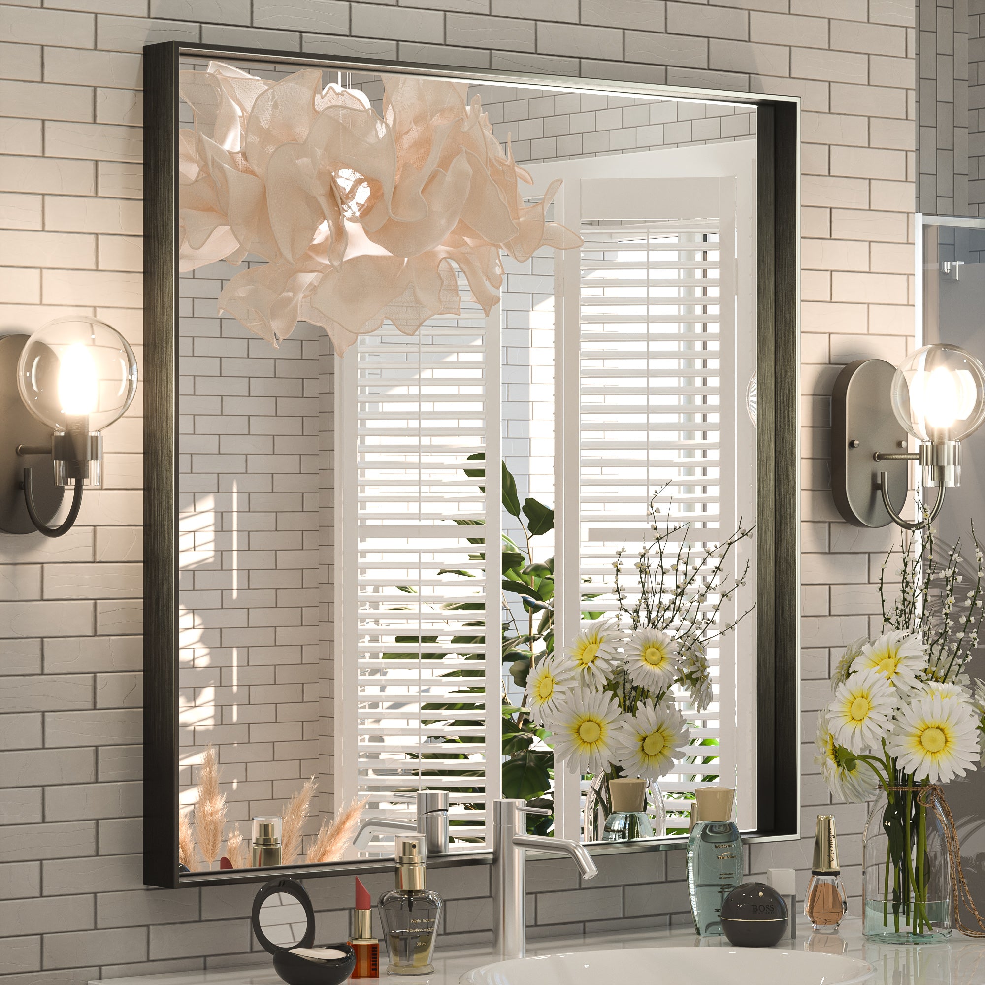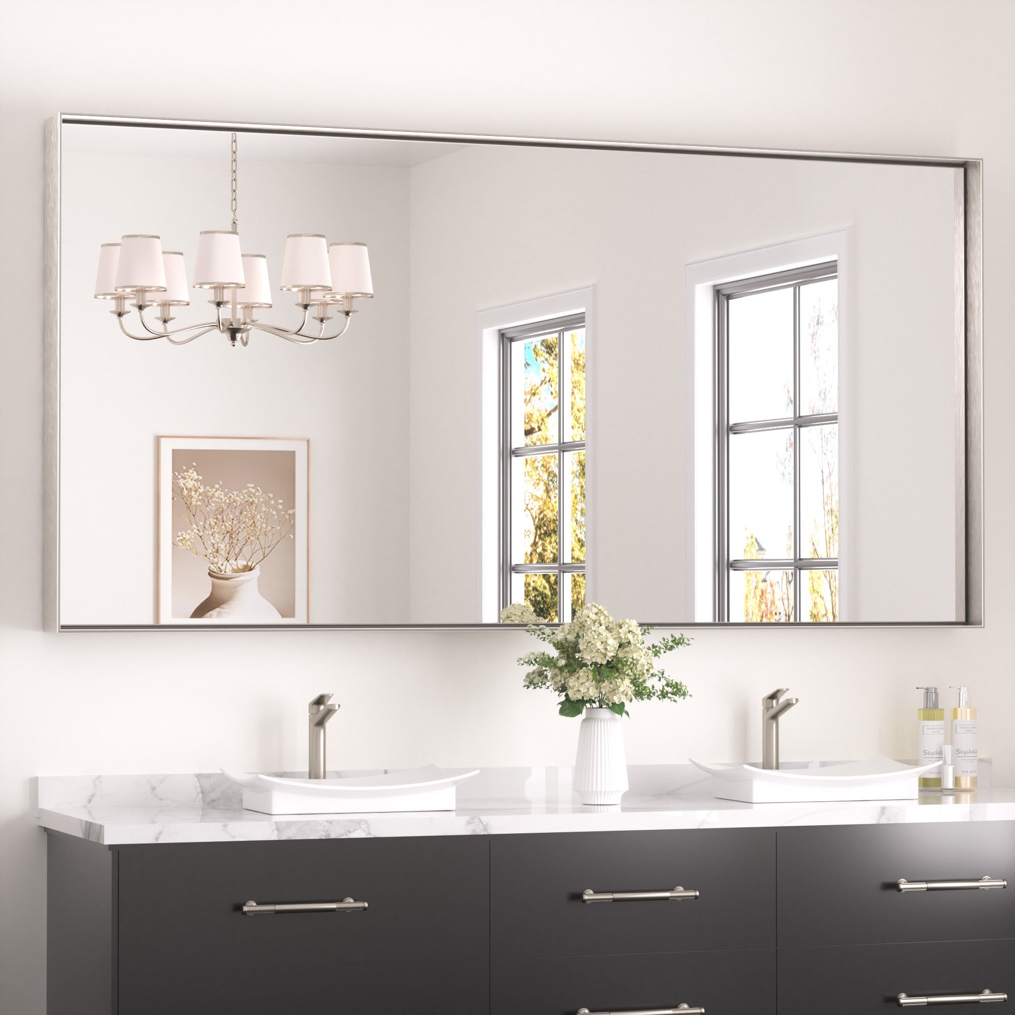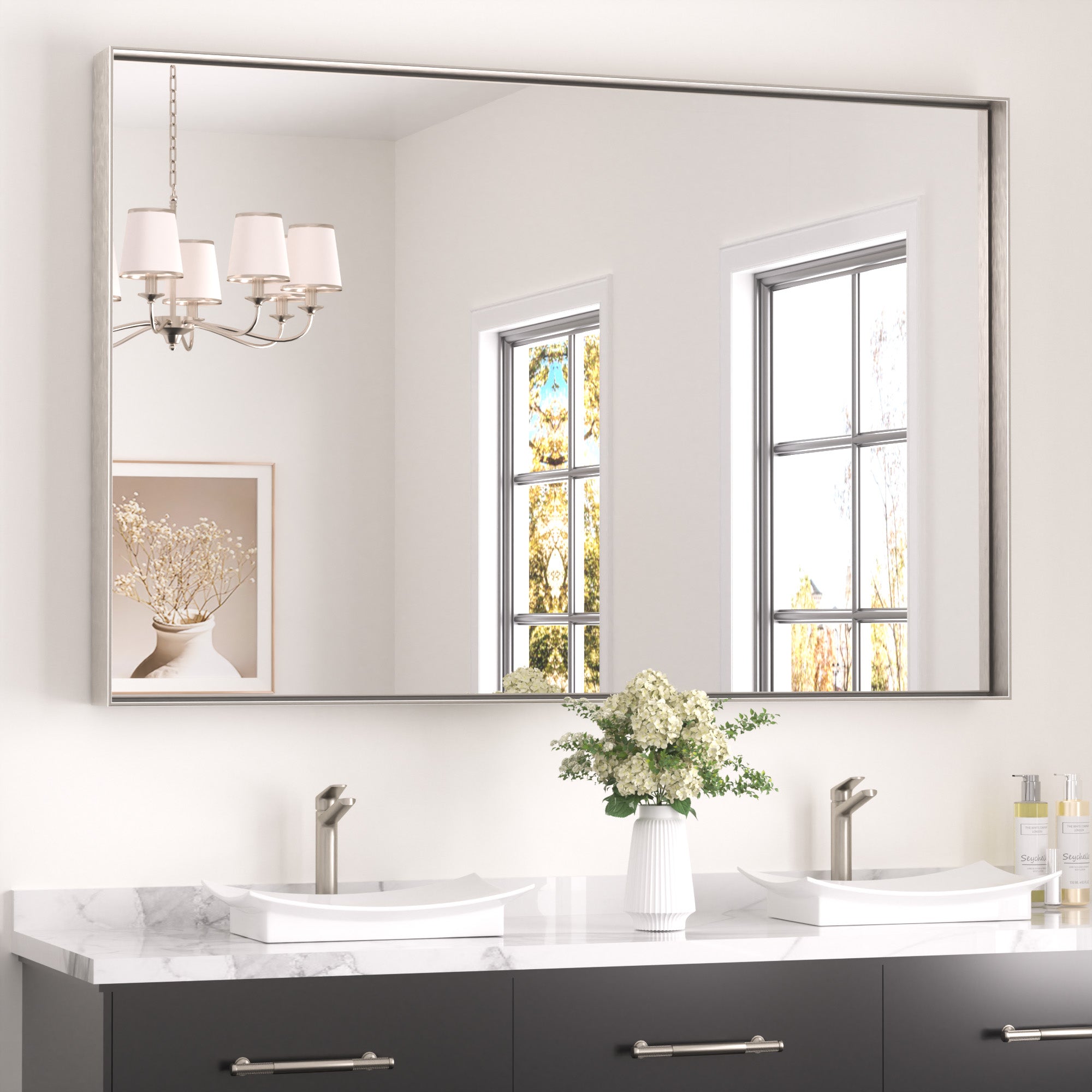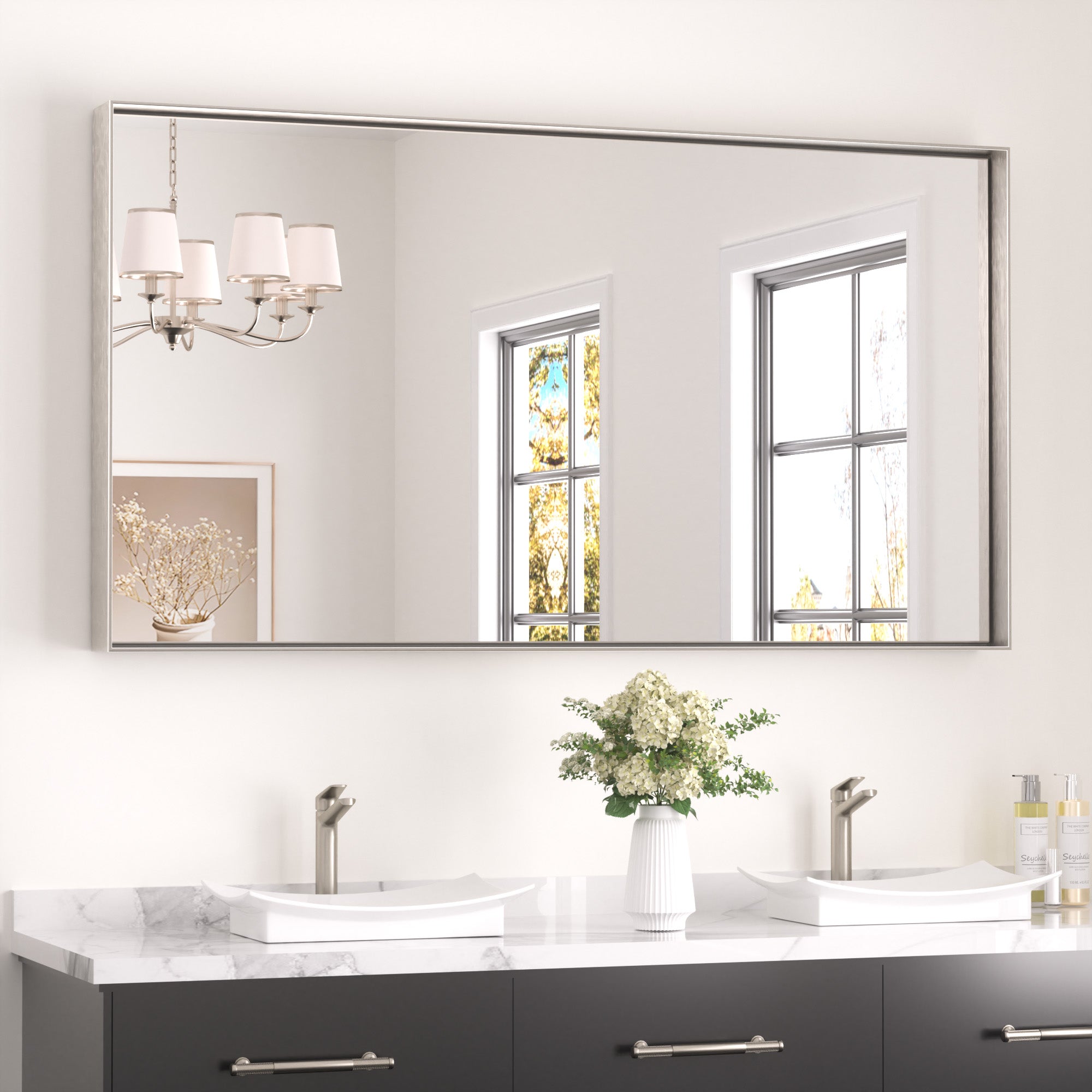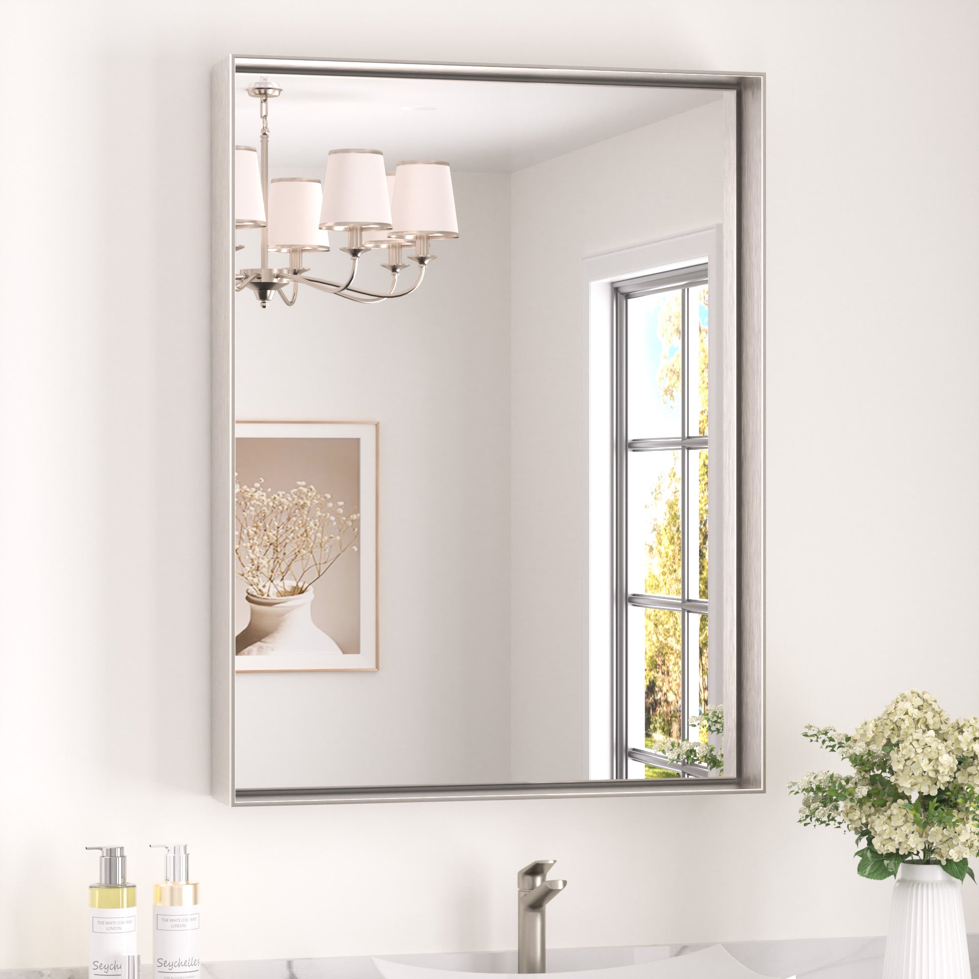 - ??Secure & Easy Installation??The brushed metal mirror designed with 4 built-in slots on the back for hanging horizontally or vertically. Super easy to install with one French cleat bracket. Hardware Included. We have designed a sturdy 4-layer packaging for mirrors, so you don't have to worry about receiving a broken mirror.