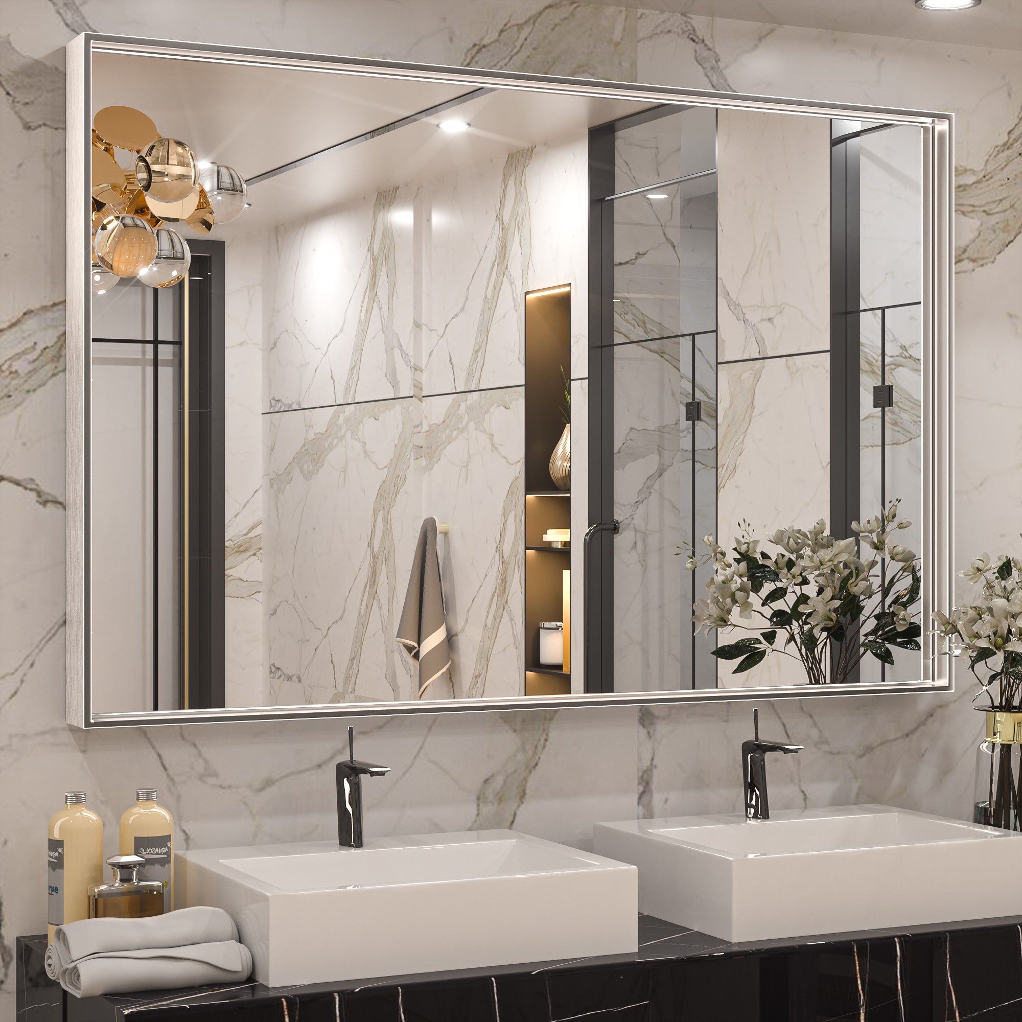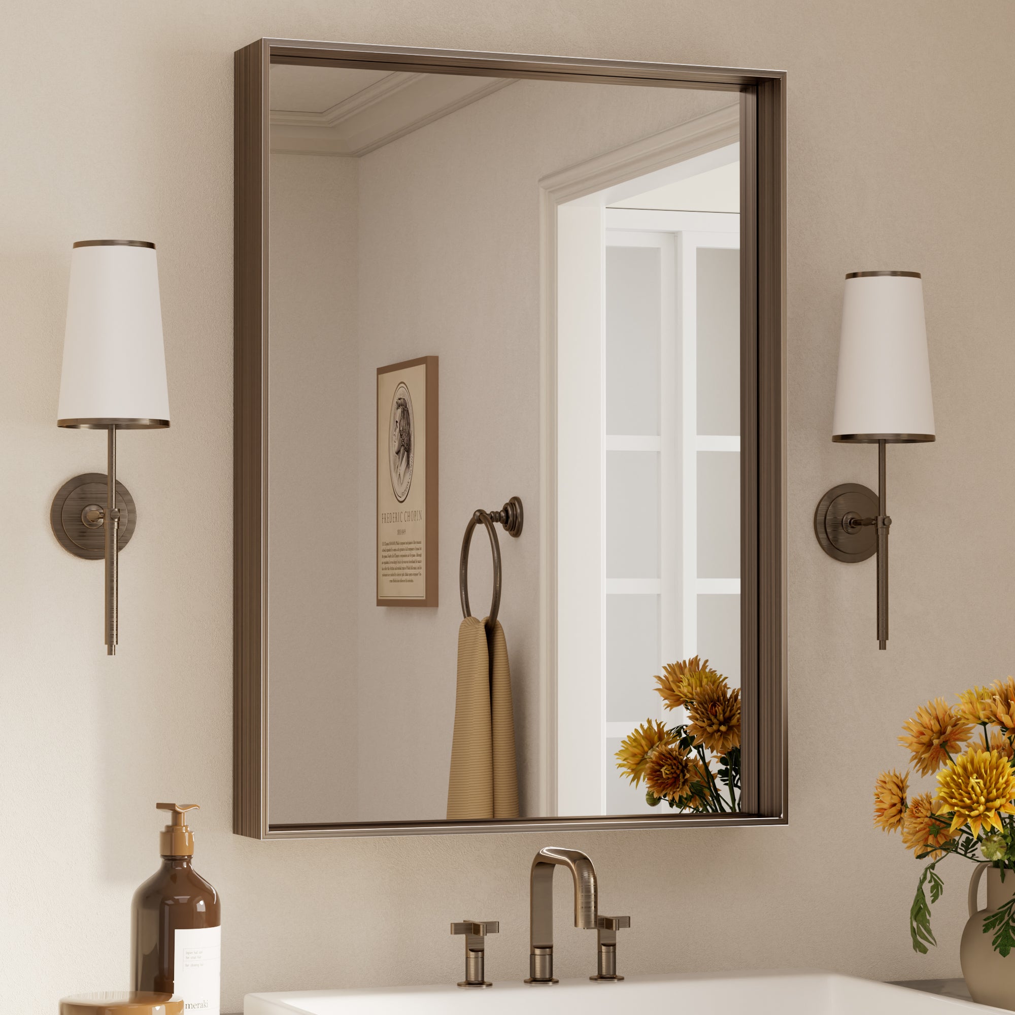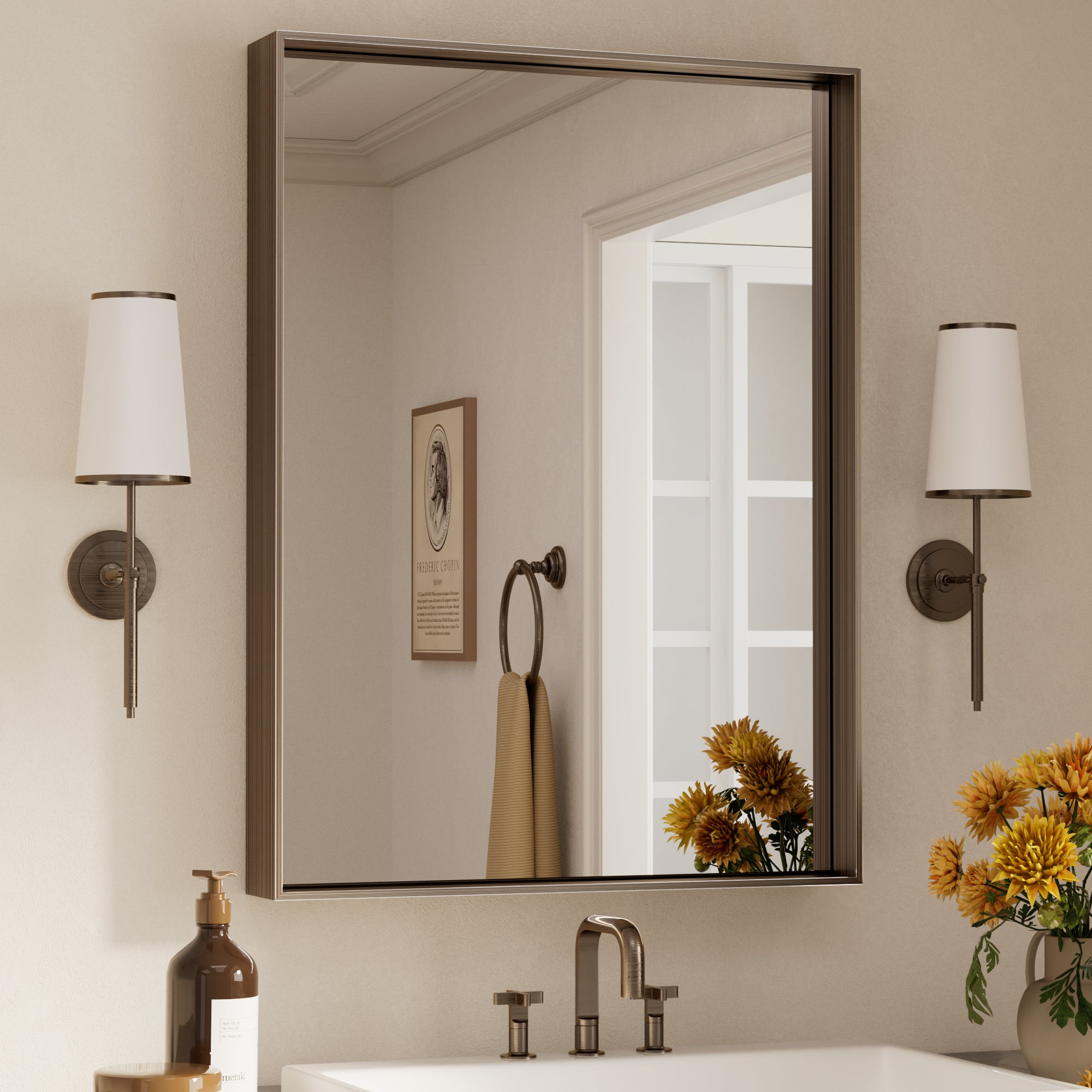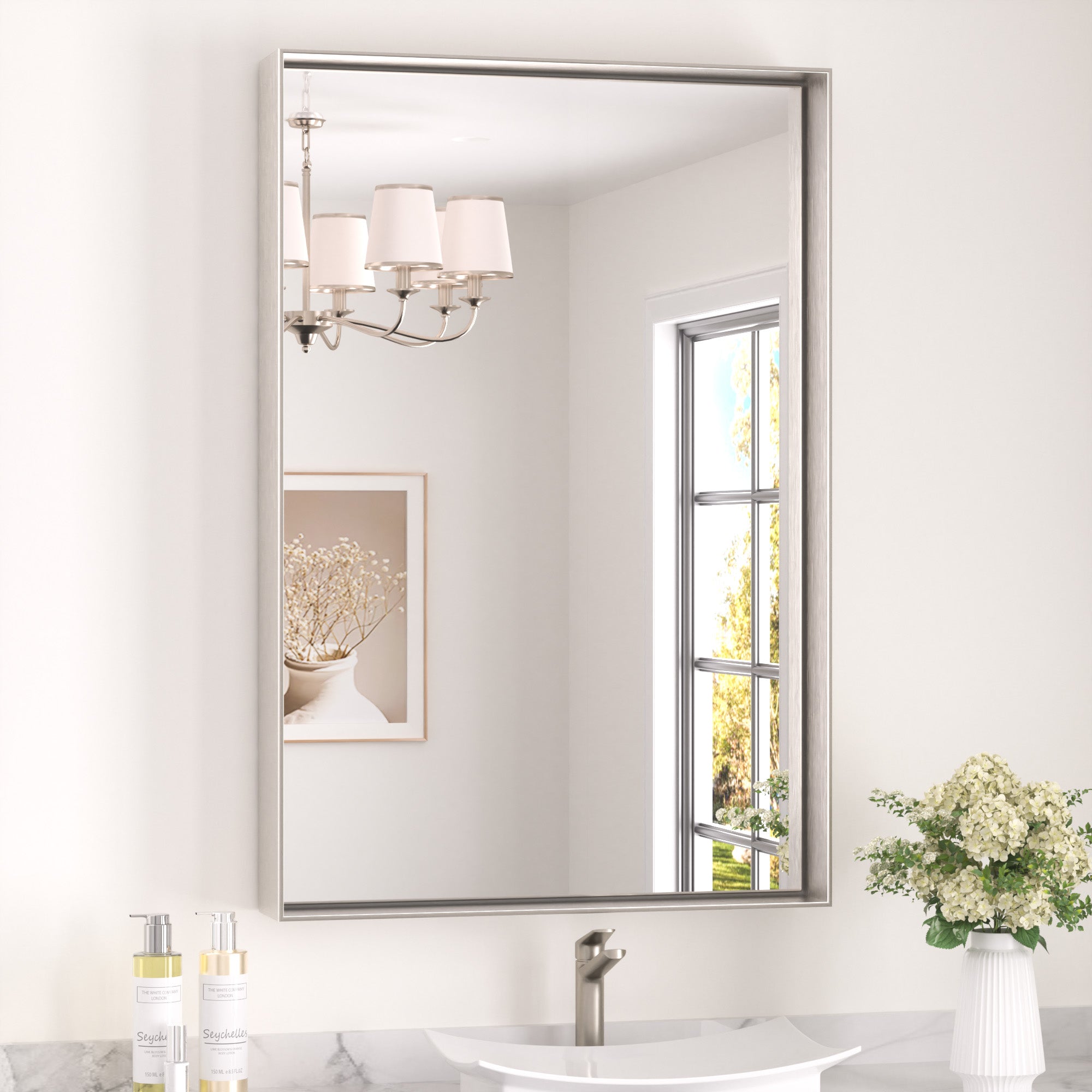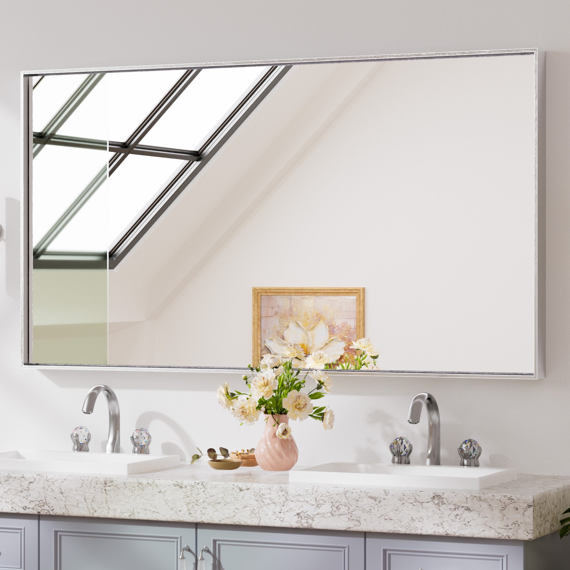 - ??Secure & Easy Installation??The brushed metal mirror designed with 4 built-in slots on the back for hanging horizontally or vertically. Super easy to install with one French cleat bracket. Hardware Included. We have designed a sturdy 4-layer packaging for mirrors, so you don't have to worry about receiving a broken mirror.