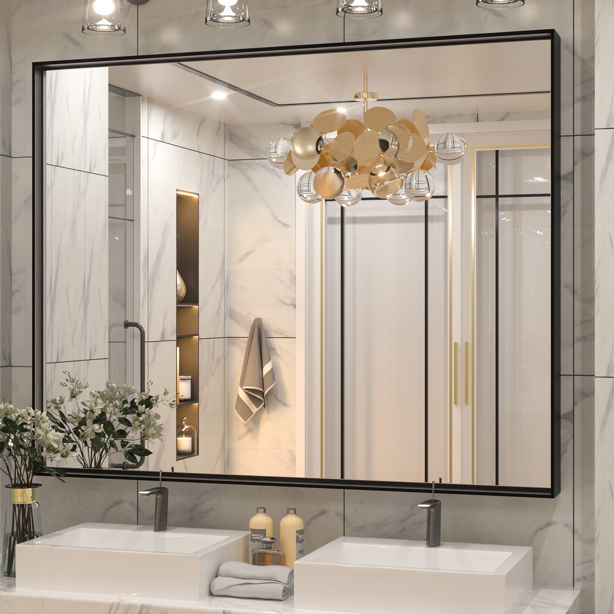 - ??Exceptional Quality??Our brass gold bathroom mirror is made of HD 5mm glass, bright and anti-distortion, which provides perfect reflection. Durable Aluminum alloy frame and PVC shatterproof film would strengthen the floating glass for safety, waterproof and anti-corrosion in wet bathroom environments.