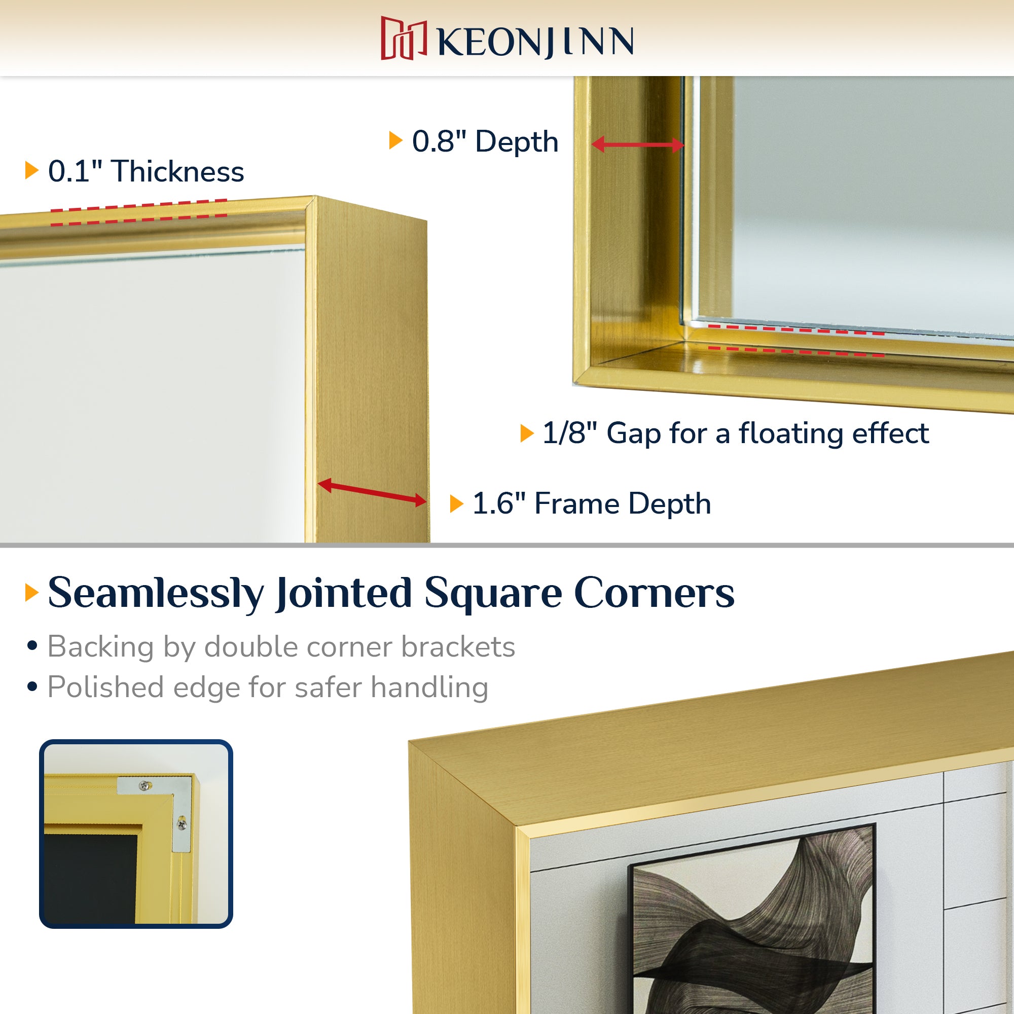 - ??Modern Design??The metal mirror has the most elegant brushed brass gold finish, coming with a 1.57" depth Aluminum alloy frame. With a classic square corner design and deep set design, the gold vanity mirror allows for creativity and functionality in bathroom, bedroom, entryway and anywhere else. Let your living space be an expression of your personal style, not limited to modern or contemporary, farmhouse or industrial.