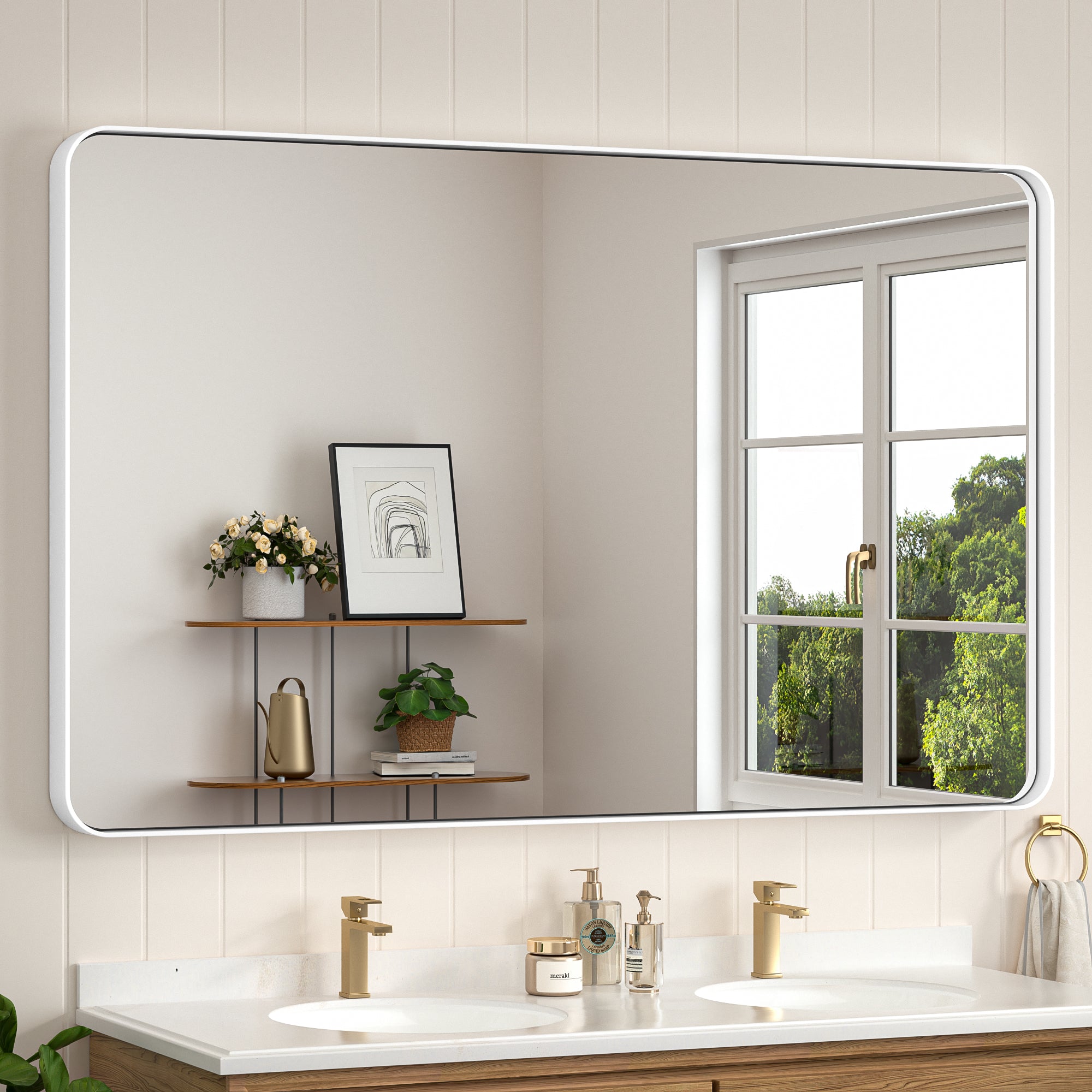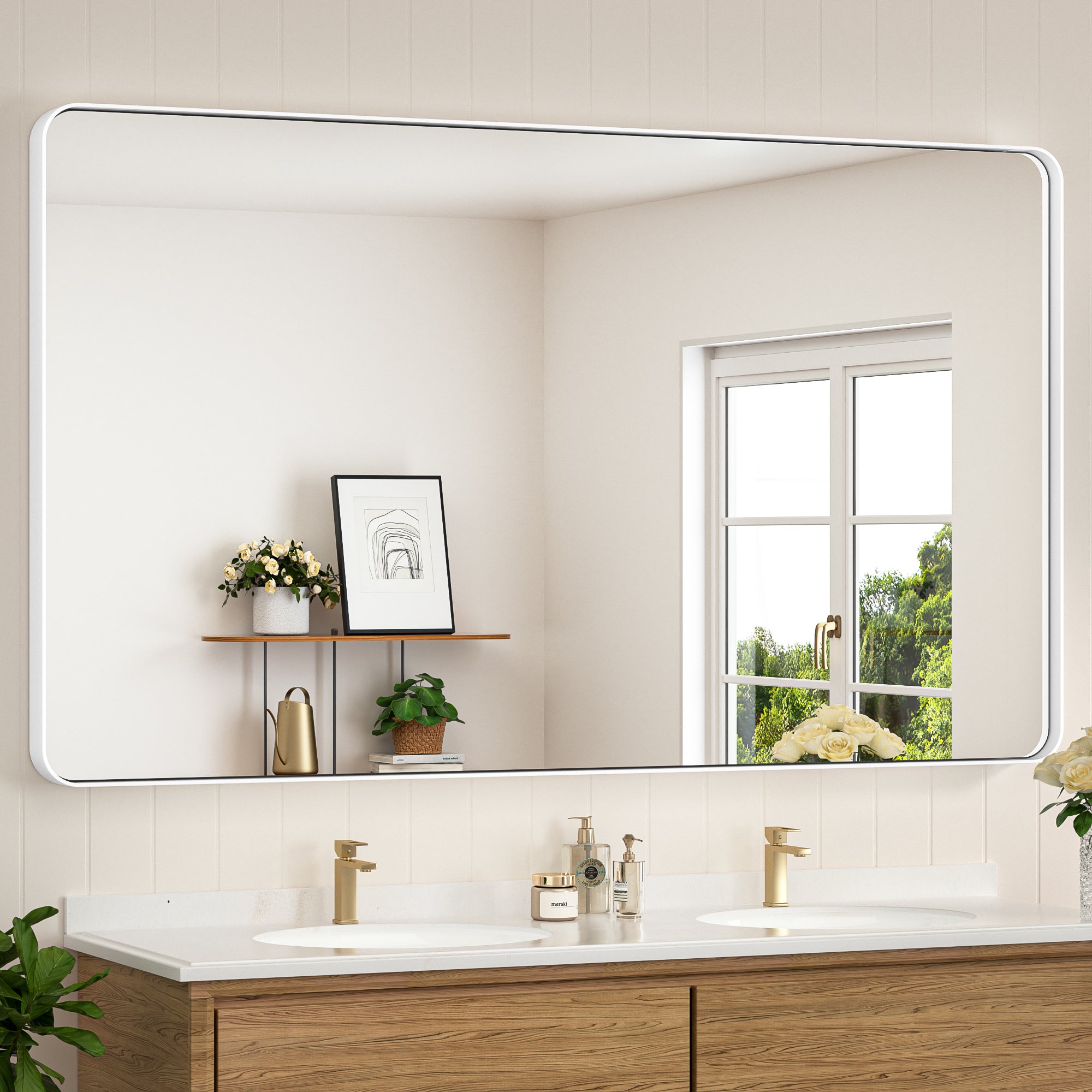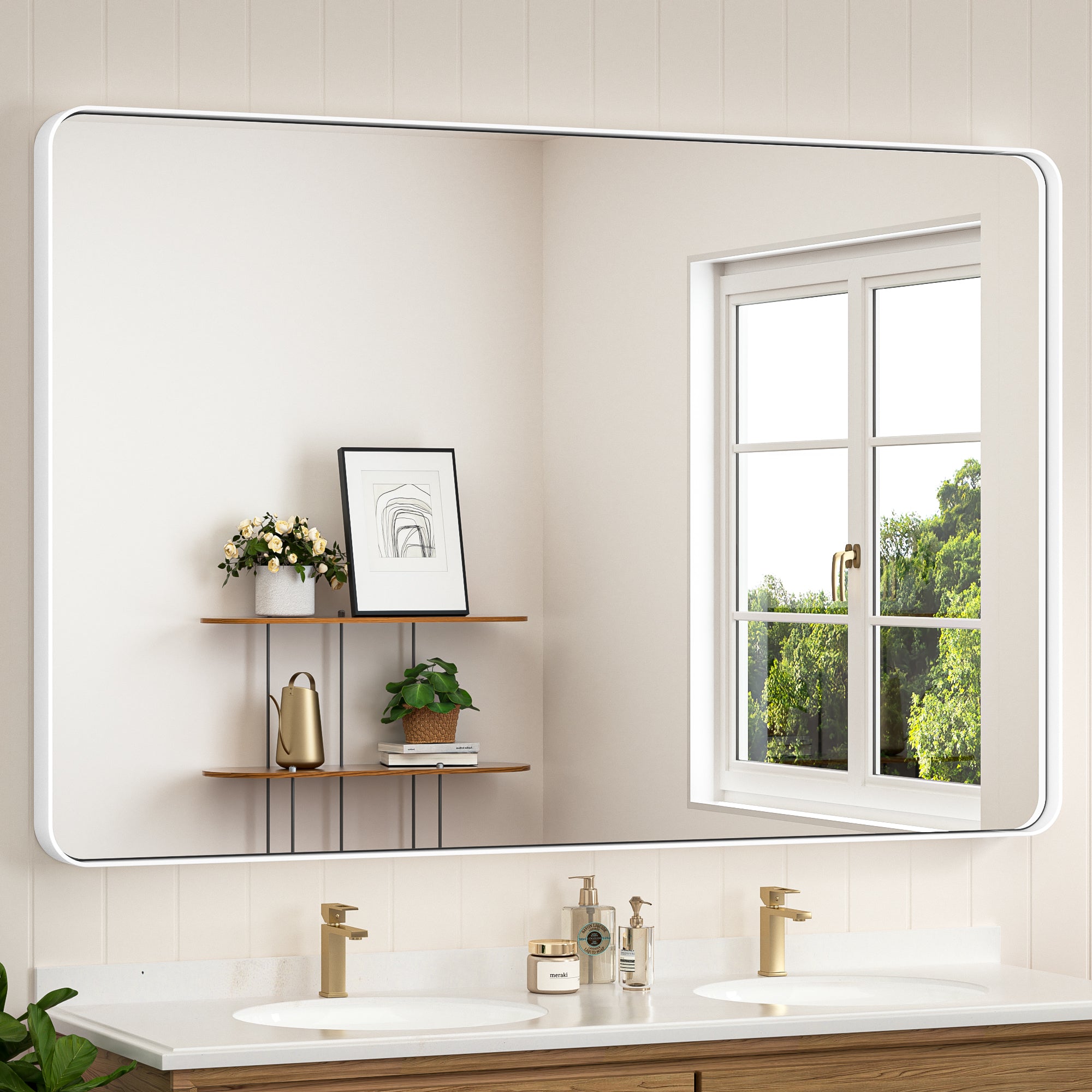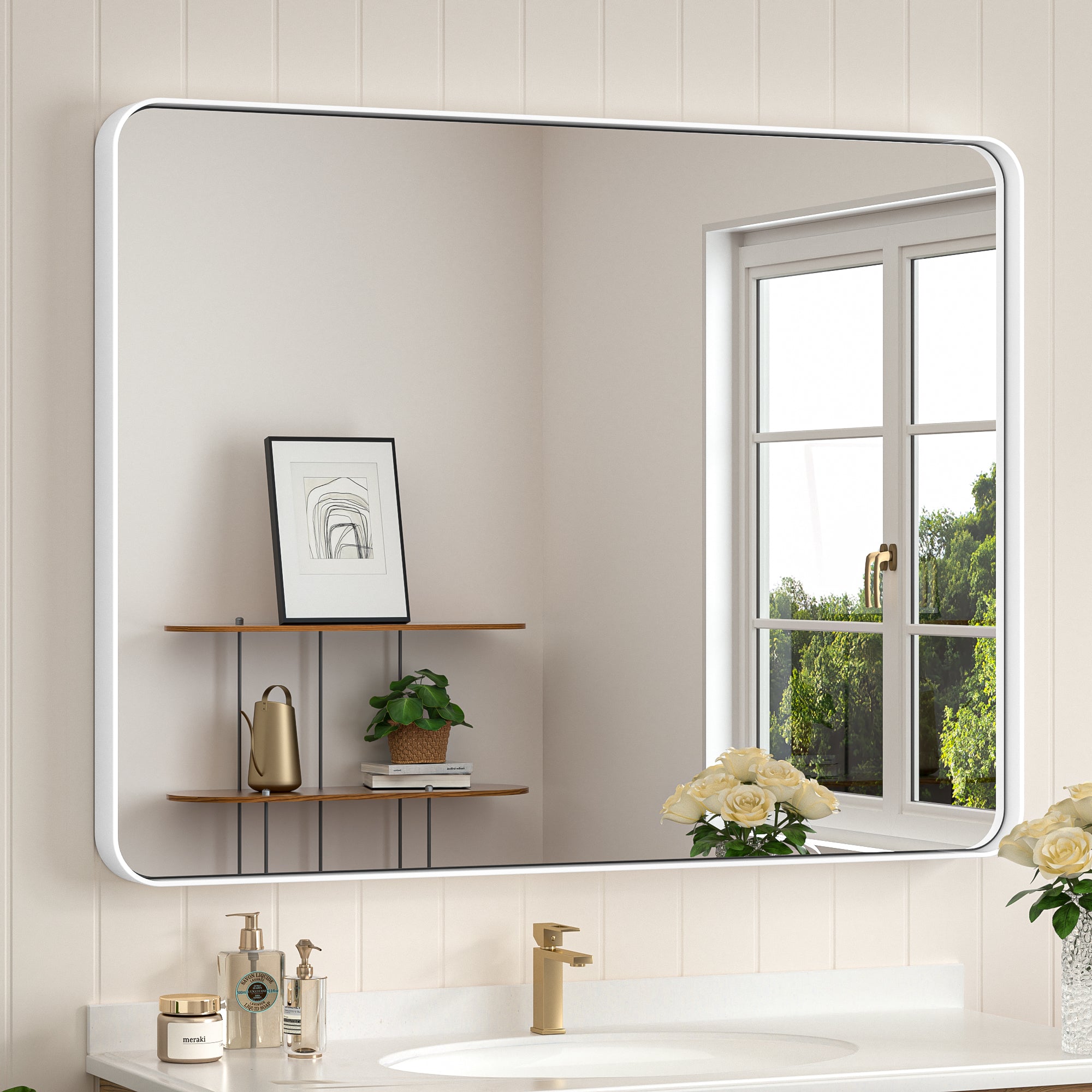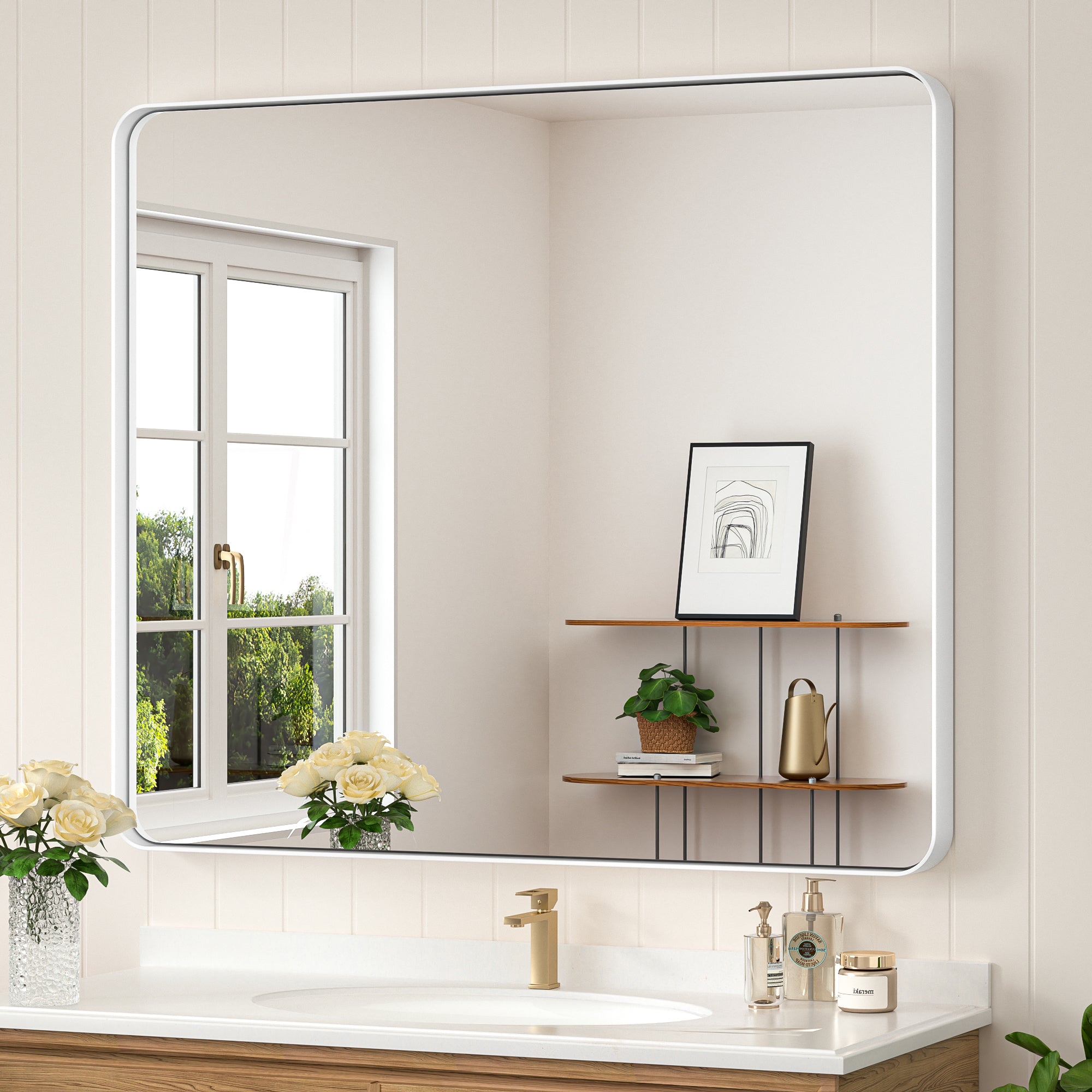 ¡¾Modern Elegance Meets Versatile Styles¡¿ Embrace the modern sophistication of Keonjinn Rounded Metal Frame Mirror. With a clean rounded rectangular shape and subtle details such as a seamless frame and a floating effect, the wall mirror is meticulously designed to add a delicate touch to any decor in your bathroom, bedroom, living room, fireplace or entryway. ? ?